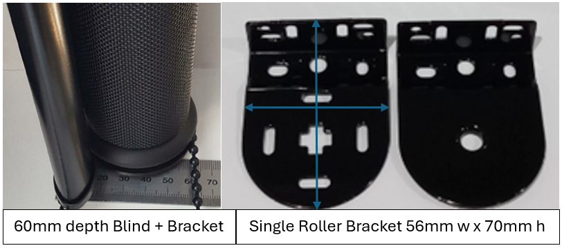 ![]() | INSIDE First check your frame depth. Single Roller needs 60mm frame depth for a flush fit. Alternatively, if you are ok with some of the blind sitting proud of the frame, the minimum depth we suggest is 40mm. A Single Roller bracket is 56mm x 70mm. It is important to scan the window and check for possible obstructions within the frame. PLEASE NOTE A Double Bracket is 88mm x 150mm and frame depth required is 90mm. Double Blinds are best inside fit. Reference image at end of this guide. OUTSIDE If you opt for outside fit make sure you have a thick architrave to screw into or consider fitting to wall space above. If screwing to wall space above make sure you have solid fixing behind. |