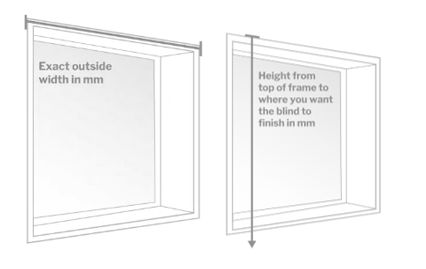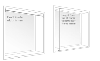 ![]() | After deciding on inside or outside fit, start measuring. Always measure the width first then height, in millimetres. Using a metal tape measure, measure width in three places (top, middle and bottom), where there is a difference of a few millimetres use the smallest measurement. Keep in mind the measurement at the top is the most important as this where the brackets are to be positioned. Measure the height in three places, left, middle, right and again use the smallest measurement. Be accurate, while we can trim Rollers down if measured too wide, we cannot make them wider if measured too short. |